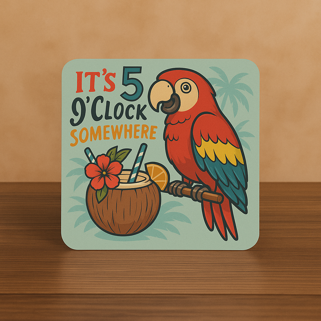 It’s 5 O’Clock Somewhere Coaster – Tropical Parrot Cocktail Gift